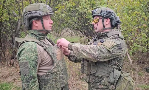 Офицеры управления одного из мотострелковых соединений группировки войск «Днепр» вручили государственные награды военнослужащим штурмовых групп. Церемония прошла на позициях вблизи линии боевого соприкосновения. Пресс-служба Минобороны делится кадрами церемонии.