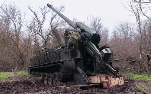 На Запорожском направлении расчеты самоходных артиллерийских установок «Гиацинт-С» группировки войск «Днепр» продолжают демонстрировать мастерство в борьбе с военной инфраструктурой противника. В ходе боевой работы, кадрами которой поделилась пресс-служба Минобороны, был выявлен и мгновенно уничтожен полевой склад боеприпасов боевиков Зеленского.