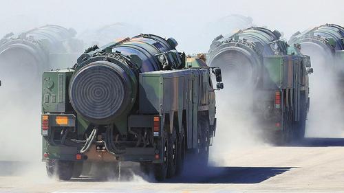 Первое, что хотелось бы отметить, это образцы вооружений стратегических ракетных войск Китая и вообще ракетно‑ядерные (и неядерные) вооружения большой дальности. Прежде всего отметим МБР DF‑5C. Это очень старая китайская жидкостная ракета шахтного базирования массой в районе 185 т, которая летала ещё в начале 1980‑х. Но тогда она была сильно иной. Её требовалось заправлять перед пуском и чуть ли не два часа готовить к старту. Она несла одну весьма тяжёлую и мощную боевую часть для компенсации плохой точности и годилась только против городов. Ещё тогда китайские конструкторы пообещали тов. Дэн Сяопину создать разделяющиеся головные части с неуправляемыми боевыми блоками индивидуального наведения (РГЧ ИН). Но он до этого момента не дожил, как и многие его преемники на посту.